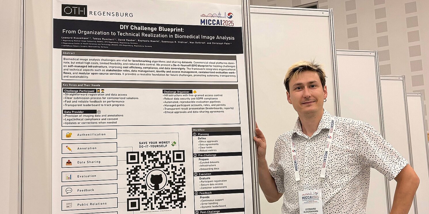 Auf der MICCAI 2025 in Daejeon, Südkorea, stellte Leonard Klausmann am Freitag, den 26. September, die Arbeit zu Do-It-Yourself Infrastrukturen für Biomedical Image Analysis Challenges vor.